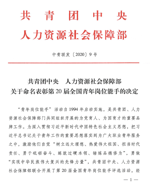 喜报 | 热烈祝贺法士特青年郝海洋荣获“全国青年岗位能手”称号
